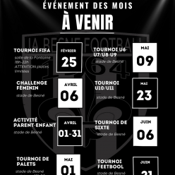 ÉVÉNEMENTS DES MOIS À VENIR La fin de saison s’annonce intense au club ! Entre tournois, challenge féminin, foot en salle et...