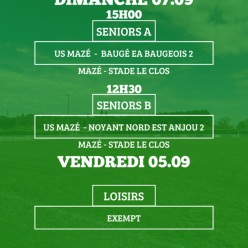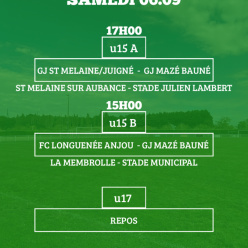 Publié le 02 septembre 2025Nos U6/U7 et U8/U9 feront leur grande rentrée ce mercredi 3 septembre au complexe Bernard Bioteau à Trélazé - de 13h30 à 15h ! Po...