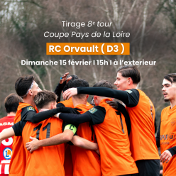 Le tirage du 8ᵉ tour de la Coupe des Pays de la Loire est tombé. Nos joueurs se déplaceront à RC Orvault (D3) le dimanche 15 fé...