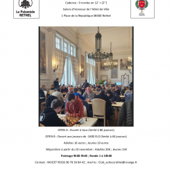 Notre 9ème Open rapide s'est déroulé ce mardi 11 novembre et comprenait un Open principal (ouvert à tous) et un Open B (réservé au...