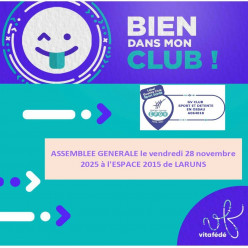 L'Assemblée Générale de notre Club se tiendra le Vendredi 28 novembre 2025, à 19 h 00 à l’Espace 2015 de Laru...