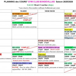 Exceptionnellement il n'y aura pas cours de HATHA YOGA, le jeudi 6 novembre. Les jeudis 13, 20 et 27 novembre les cours se dérou...