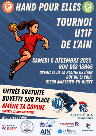 Samedi 6 décembre 2025 A domicile moins 13 ans féminines Territorial 13h30 HBC Ambérieu - Bourg moins 15 ans féminines excellence AURA 15h00 HBC Ambérieu - St Jul...
