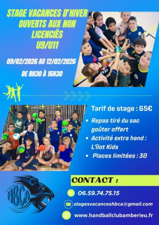 Samedi 17 janvier 2026 A domicile moins 11 ans féminines Territorial 12h00 Challenge hand à 4 Ambérieu - Bourg - Meximieux - Trévoux moins 13 ans masculins 2 Territoria...