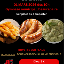 Venez vous régaler et soutenir le club: On cuisine pour vous des diots, accompagnés au choix de frites ou de ravioles Sur place ou à emporter Saucisse de poulet hallal également disponible Pensez environnement: amenez vos contenants pour les ve...