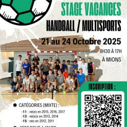 Chers parents, chers joueurs, Mions Handball organise un stage de handball la première semaine des vacances scolaires de TOUSSAINT 2025 Tous les enfants des catégories -11 ans; - 13 ans; - 15 ans (filles et garçons) sont les bienvenus. - Mardi 21...