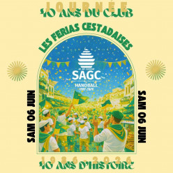 samedi 06 juin samedi 06 juin Handball • Salle Verte (anct Subrenat): Complexe sportif Bouzet, chemin de Canéjan CESTAS (33) 33610 • SAG CESTAS HANDBALL 40 ANS SAGC HANDBALL 🔰⭐ Inscriptions au tournoi : TOURNOI (lien) Inscriptions à la soirée : REPAS (lien) Les places étant limitées, nous vous conseillons de réserver rapidement.