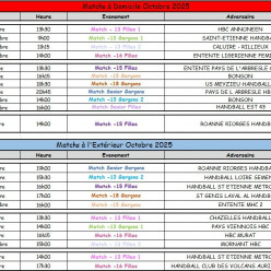 Matchs du mois d'Octobre
