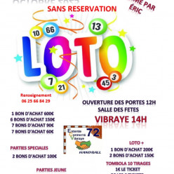 Publié le 18 septembre 2025Nous vous attendons nombreux au loto de l'ECV ! Qui aura lieu le 19 octobre à la salle des fêtes de vibraye. Parlez-en un maximum...