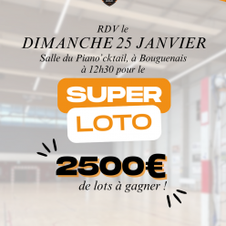 La CJB vous invite à son tout premier Super Loto le Dimanche 25 janvier 2026 dans la salle du Piano'cktail de Bouguenais !! Plus de 2 500€ de cadeaux et bon cadeaux sont à gagner ! Et les gros lots ? 1 séjour d'une semaine dans un mobil-home 4 à 6...