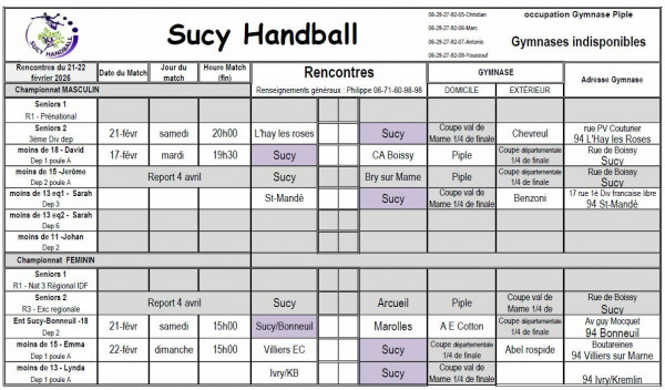 Planning du 14-15 mars