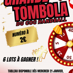 🔥🔥 GRANDE TOMBOLA DU COC HANDBALL 🔥🔥 🎟️ 1 numéro = 2€ 🎁 6 LOTS DE FOLIE À GAGNER 🤩 🏆 À gagner absolument : ⭐ Un maillot dédica...