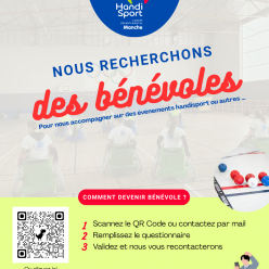 Handisport • (50) • Comité Départemental Handisport de la Manche Formulaire bénévole CDH50 Tu as un peu de temps, de l’énergie et l’envie d’aider ? Rejoins l’équipe de bénévoles du CDH50. Nous recherchons des personnes m... Publié le 20 mars 2026