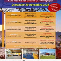 Compétition Short Course pour les cadets, juniors, seniors, masters (une catégorie) Lieu : Centre culturel Alban Minville : 1 Pl. Martin Luther King, 31100 Toulouse Priorité est faite aux compétiteurs du département. Ouverture des portes 7h30. Fin...