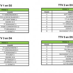 Bonjour, Voici les poules de nos 4 équipes de la départemental 5 à 2