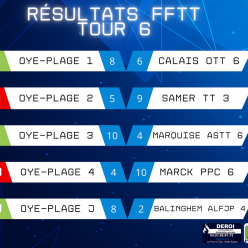 Le samedi 14 décembre 2025, les équipes d’Oye-Plage Tennis de Table étaient engagées pour le 6ᵉ tour de championnat FFTT. Bilan gl...