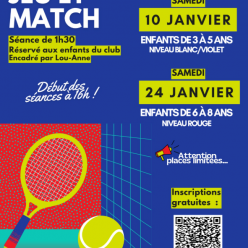 Dans le cadre de sa formation CQP, Lou-Anne propose d’animer des plateaux Jeu & Match spécialement destinés aux jeunes joueurs du club. Ces séances auront lieu le samedi de 16h à 17h30, avec un goûter offert. La participation est gratuite, mais les...