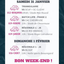 🔥 AFFICHES DU WEEK-END – JOUR DE MATCH 🔥📅 31 janvier & 1er février
