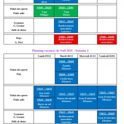 Le gymnase sera fermé pendant les vacances de fin d'année. On se retrouve le 5 janvier 2026. Joyeuses fêtes.