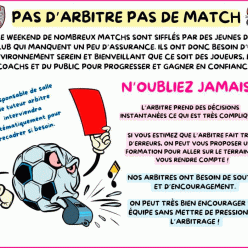 Bonjour pour l'école d arbitrage j'ai besoin de moins de 11 et moins de 13 qui viennent jouer sur le créneau pour que les jeunes arbitres viennent arbitrer il faut apporter le maillot d arbitre ( le bleu avec toutes les valeurs dessus ) merci A s...