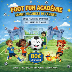 Cliquer pour s'inscrire ICI STAGES De Football des vacances scolaires d'Hiver (Février/Mars) 2026 4 Formules enfants pendant les 2 semaines des vacances scolaires : Des U6 (2020) aux U14 : IMPORTANT et ATTENTION : Les séances auront lieu...
