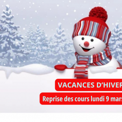 En raison des vacances scolaires d'hiver, les cours s'arrêteront samedi 21 février à 13h et reprendront lundi 9 mars à 9h. Pendant cette interruption, plusieurs ateliers sont proposés par vos professeurs en renforcement musculaire , Pilates et yoga ,...