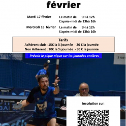 Stage de tennis de table ouvert à tous. Pour vous inscrire, cela se passe : ICI