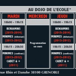Publié le 29 août 2025Reprise anticipée des cours pour les compétiteurs (cf.mail invitation) vendredi 5 septembre de 19h à 20h30 au dojo des Avenières....