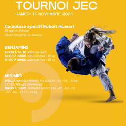 STAGE / STAGE / HORS CATEGORIE - Années de naissance : 1910 ->2017 - Couleurs de ceintures : Blanche -> Noire Le 09/11/2025 - Saison 2025/2026 DOJO DE LA QUINIERE 106 ALLEE FRANCOIS 1ER 41000, BLOIS