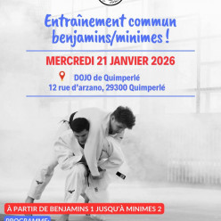 vous êtes conviés à un entrainement avec votre enfant sur le tatami de Rosporden. Il vous faut une tenue de sport, une bouteille d'eau et du courage. A la fin nous partagerons la galettes des rois baby do : 14h pré-poussins: 15h poussins benjam...