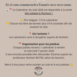 Il y a un début à tout Et si vous commenciez l’année avec nous 🥋📅 Le Calendrier du club 2026 est disponible à la vente Nos judok...