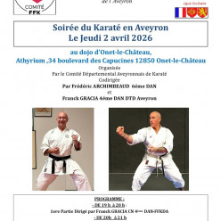 Codirigé par Frédéric ARCHIMBEAUD 6éme DAN et Franck GRACIA 4éme DAN DTD Aveyron PROGRAMME : - DE 19 h à 20 h : 1ere Partie dirigée par Franck GRACIA CN 4ème DAN-FFKDA - 2éme Partie dirigée par Frédéric ARCHIMBEAUD CN 6ème DAN-FFKDA