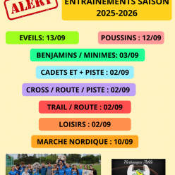 Reprise des entrainements à partir du mercredi 10 septembre 2025 !