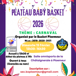 📣 Le BO Ploemeurois organise son plateau Baby Basket 🏀 👉 ouvert à tous les enfants nés en 2019, 2020 ou 2021 (licenciés ou non)...