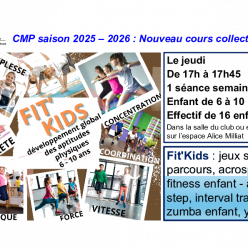 Publié le 26 août 2025Avec ce cours réservé aux enfants de 6 à 10 ans, le CMP se donne pour mission de développer globalement les aptitudes physiques de...