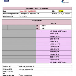 Meeting toutes catégories, ouvert à tous sans temps qualificatif Informations : Liveffn Officiels Engagerments Covoiturage Repas