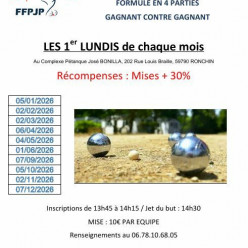 Le club a été inscrit cette année à la troisième édition du Double Mixte Challenge !! Voici les règles d'inscription : - horaires : 9h - 17h - nombre limité de places (8 équipes maximum) - les premières réservations seront les premiers inscrit...