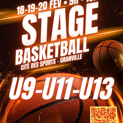 📅 18, 19 et 20 février ⏰ 9h – 16h 📍 Cité des Sports – Granville Stage orienté pratique du basket, travail technique et jeu, adapté aux catégories U9 à U13. Encadrement assuré par les entraîneurs du club, avec un contenu adapté à chaque catégorie. L...
