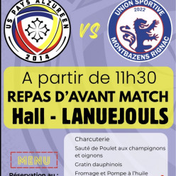 Le REPAS d'AVANT MATCH de l'USPA !!! Un rendez-vous à ne pas manquer, c'est le REPAS de l'USPA qui se déroulera dimanche 12 AVRIL à la salle polyvalente de LANUEJOULS à partir de 11h30. Nous vous proposons un menu SUCCULENT qui bousculera vos pap...