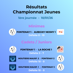 Résultats de la 1ère journée du championnat jeunes : 4 défaites, mauvaise journée. On repart à l'entraînement pour faire mieux. AL...