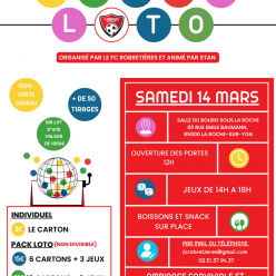 Publié le 04 février 2026Le Samedi 14 Mars, le FC Robretières vous propose à 𝗹𝗮 𝗦𝗮𝗹𝗹𝗲 𝗱𝘂 𝗕𝗼𝘂𝗿𝗴-𝘀𝗼𝘂𝘀-𝗟𝗮 𝗥𝗼𝗰𝗵𝗲 à La Roche-sur-Yon Un s𝘂𝗽𝗲𝗿 𝗟𝗼𝘁𝗼 𝗮𝗻𝗶𝗺é 𝗽...
