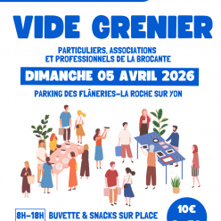 18ème VIDE GRENIERS de TIFFAUGES Le dimanche 8 mars 2028 Salle OMNISPORTS Ouverture au public de 8 h 00 à 17 h 00.