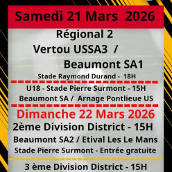 Rencontres du 22 mars 2026 à ARON 12H30 ARON C / PARNE SUR ROC B 15H00 ARON A / ES AZE A à COMMER : 15H00 COMMER A / AR...
