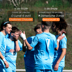 Le parcours de notre équipe fanion se poursuit en coupe. Les 1/8 de finale de la Coupe de l’Anjou se dérouleront à domicile, le l...