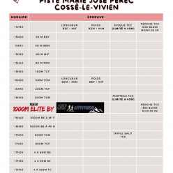 Merci de choisir une course + un saut + un lancer parmi les épreuves proposées sur les horaires de la compétition. Le 1000 mètre est obligatoire pour tous. Si les épreuves ne sont pas renseignées, votre enfant ne pourra pas être inscrit Ren...