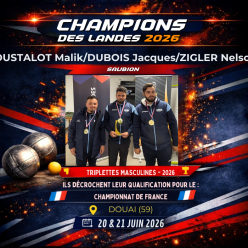 CHAMPIONS DES LANDES LOUSTALOT Malik / DUBOIS Jacques/ZIGLER Nelson (SAUBION) VICE-CHAMPIONS DES LANDES CHOT Gérard/GUEGUEN Y...