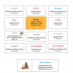 Calendrier des concours internes 2026 réservés aux licenciés et membres honoraires du Joyeux Cochonnet Creuziérois