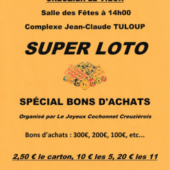 Le JOYEUX COCHONNET CREUZIEROIS organise son loto annuel le Dimanche 1er Mars 2026.