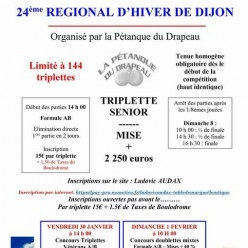 Sam 31/1 Triplette Sénior, limité à 144 équipes, début 14h ; inscription sur www.ludax , voir affiche COMPLET Dim 1/2 Doublette Mixte, début 10h