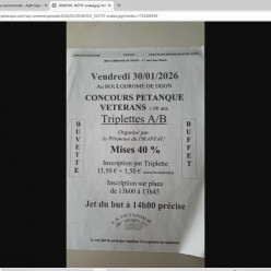 Publié le 05 janvier 2026Les inscriptions sont ouvertes pour le 12ème national doublette mixte. N'oubliez pas : de noter sur votre inscription un numéro...